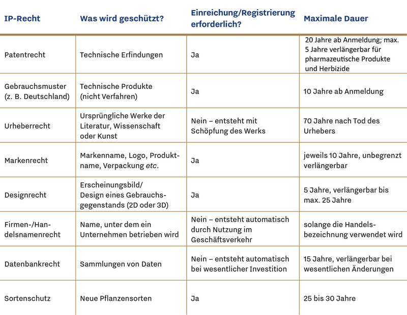 Für Sie als innovatives Unternehmen bedeutet dies, dass Sie von Anfang an strategisch über geistige Eigentumsrechte nachdenken sollten. Eine koordinierte Strategie im Bereich des geistigen Eigentums erhöht nicht nur Ihre Rechtssicherheit, sondern steigert auch den wirtschaftlichen Wert Ihres Produkts – beispielsweise im Hinblick auf Lizenzen, Kooperationen oder den Verkauf Ihres Unternehmens.