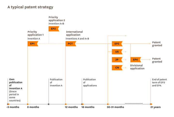 When applying for patent protection in multiple countries, it is important to proceed strategically, starting with a priority application, for example. This article uses an illustrative diagram to explain the steps involved in the process, from the priority application to subsequent applications and divisional applications, and explains the role of the grace period.